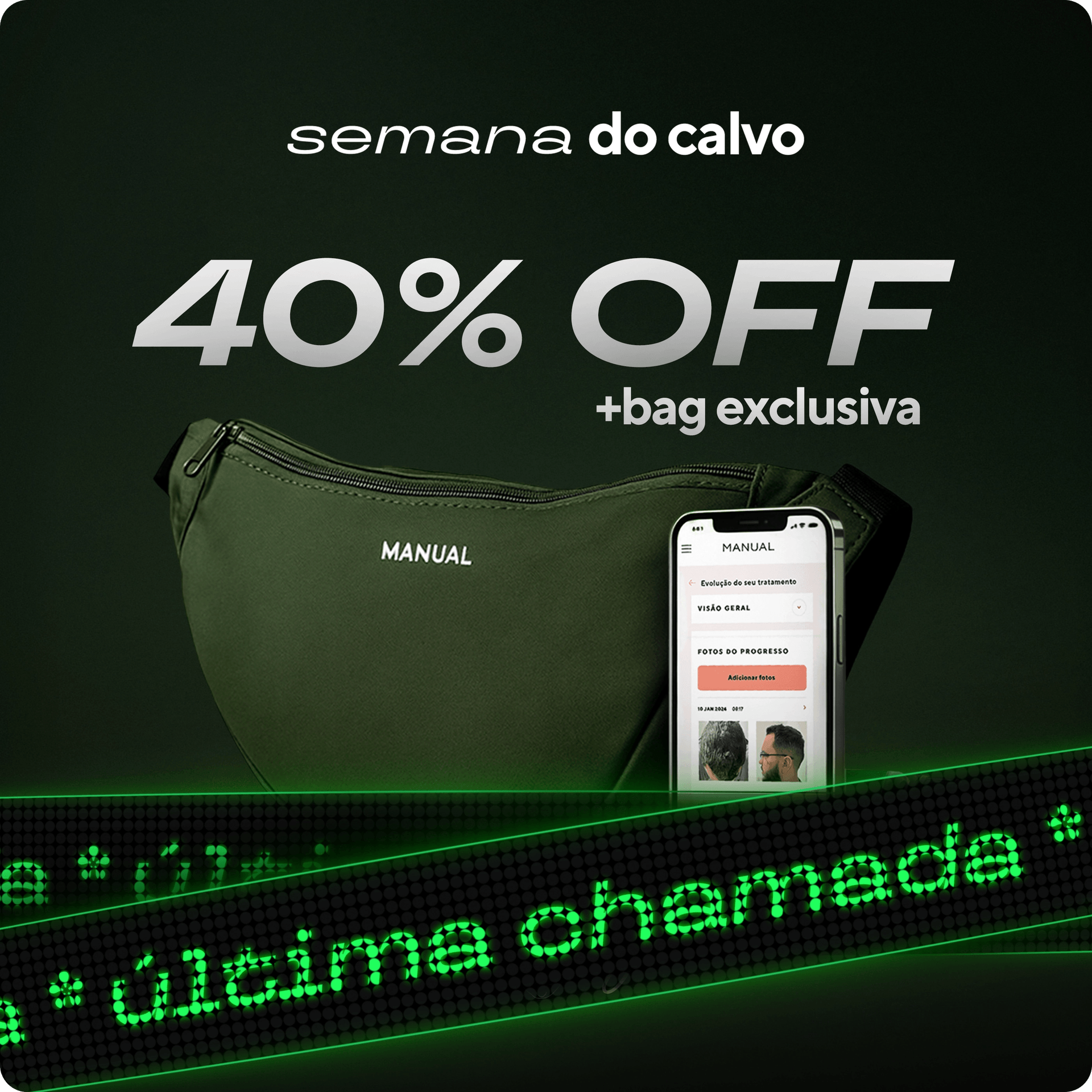 Comece a tratar a calvície com 40% de desconto e ainda ganhe uma Bag exclusiva de brinde!