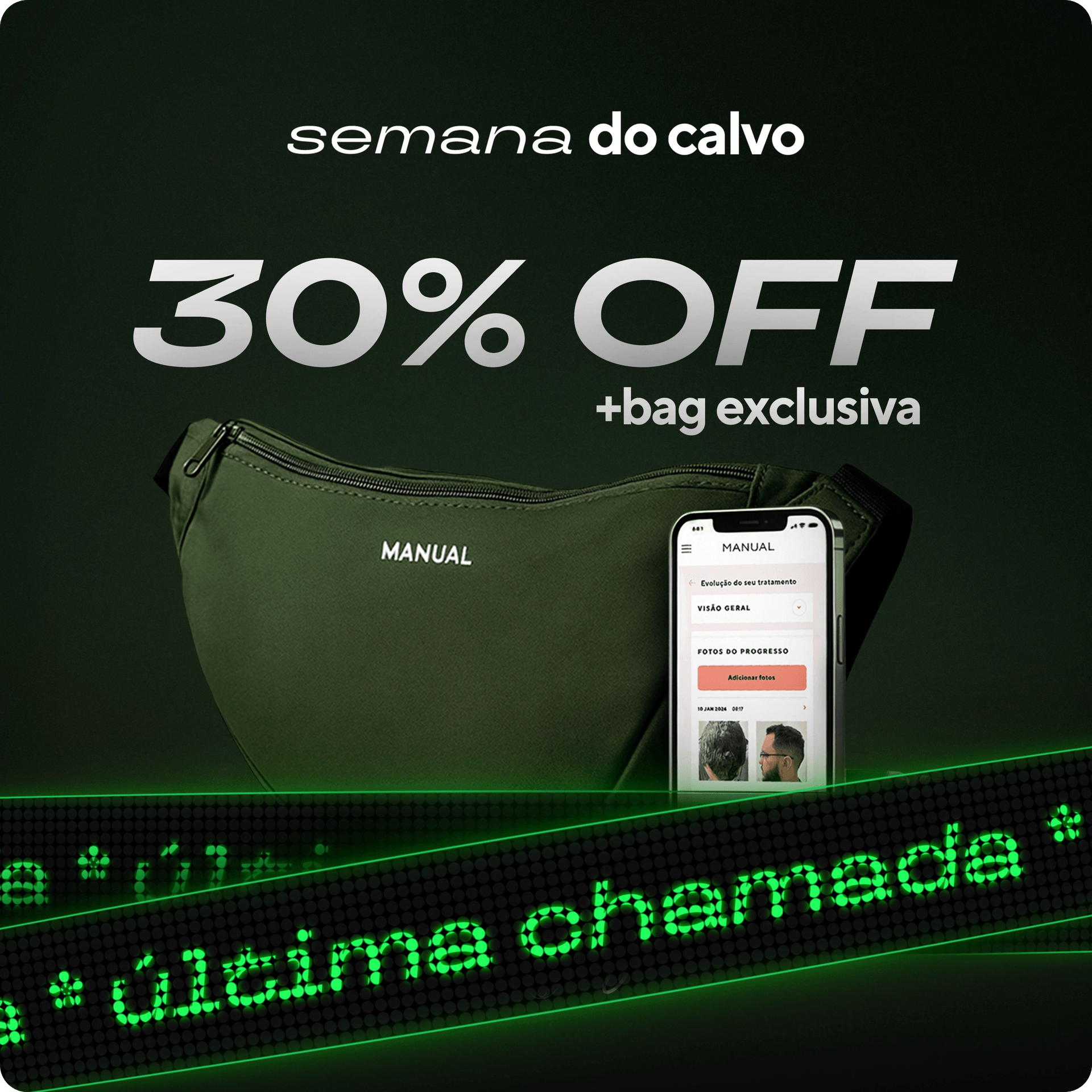 Comece a tratar a calvície com 30% de desconto e ainda ganhe uma Bag exclusiva de brinde!